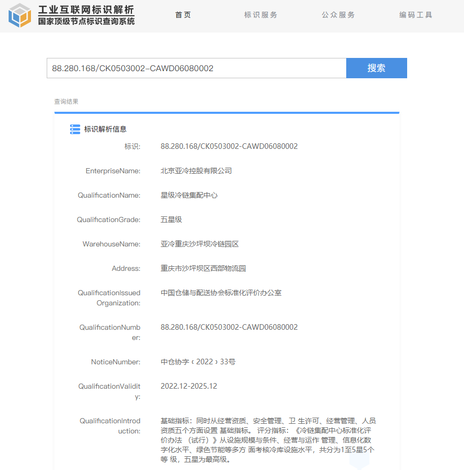 這是行業(yè)內(nèi)首次建立冷鏈集配中心標(biāo)準(zhǔn)化體系,并且開展的第一批等級(jí)資質(zhì)評標(biāo)項(xiàng)目,亞冷重慶沙坪壩冷鏈園區(qū)一舉拿到最高標(biāo)準(zhǔn)“五星級(jí)冷鏈集配中心”資質(zhì),這代表著該園區(qū)在設(shè)施規(guī)模與條件、經(jīng)營與運(yùn)作管理、信息化數(shù)字化水平、綠色節(jié)能等多方面均達(dá)到國內(nèi)頂尖水平。這得益于亞冷是同行業(yè)中體系標(biāo)準(zhǔn)建設(shè)起步早、標(biāo)準(zhǔn)較高、執(zhí)行較好的企業(yè)。